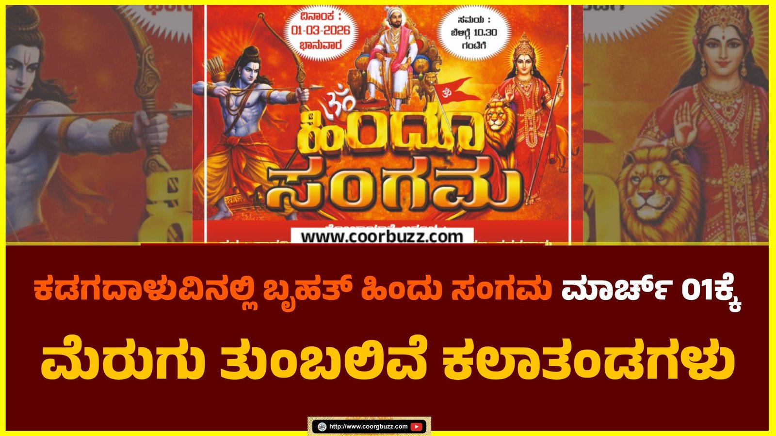 ಮಡಿಕೇರಿ : ಕಡಗದಾಳು ಮಂಡಲ ವತಿಯಿಂದ ಬೃಹತ್ ಹಿಂದು ಸಂಗಮ ಕಾರ್ಯಕ್ರಮ ಮಾರ್ಚ್ 01ರಂದು ಕಡಗದಾಳುವಿನಲ್ಲಿ ನಡೆಯಲಿದೆ. ಅಂದು