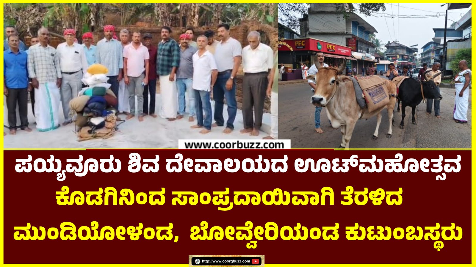 ವೀರಾಜಪೇಟೆ : ಕೊಡಗು ನಿವಾಸಿಗಳು ಮತ್ತು ಮಲಯಾಳಿಗಳು ಜಂಟಿಯಾಗಿ ಕೇರಳದ ಪಯ್ಯಾವೂರಿನ ಶಿವ ದೇವಾಲಯದಲ್ಲಿ ಆಚರಿಸುವ ಹದಿಮೂರು ದಿನಗಳ ಪಯ್ಯವೂರು