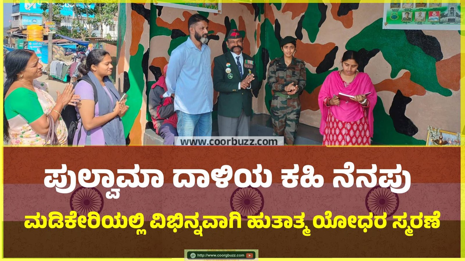 ಮಡಿಕೇರಿ : ಪುಲ್ವಾಮಾ ದಾಳಿಯ ಕಹಿ ನೆನಪನ್ನು ಮಡಿಕೇರಿಯಲ್ಲಿ ವಿಭಿನ್ನವಾಗಿ ಸ್ಮರಿಸಿ, ಹುತಾತ್ಮ ಯೋಧರಿಗೆ ಗೌರವ ಸಲ್ಲಿಸಲಾಯಿತು. ಸುಂಟಿಕೊಪ್ಪ