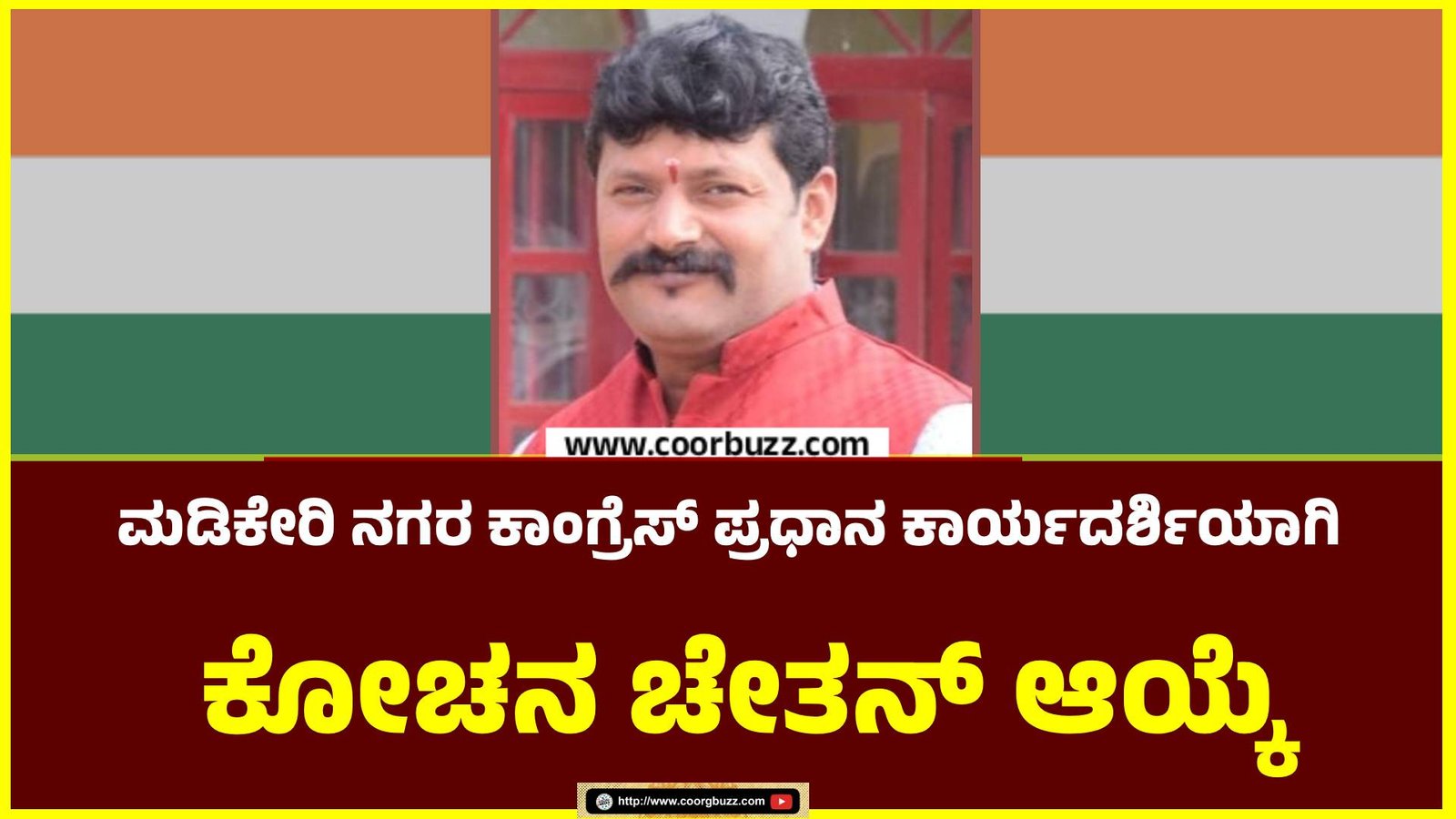 ಮಡಿಕೇರಿ : ಮಡಿಕೇರಿ ನಗರ ಕಾಂಗ್ರೆಸ್ ಪ್ರಧಾನ ಕಾರ್ಯದರ್ಶಿಯಾಗಿ ಕೋಚನ ಚೇತನ್ ಅವಿರೋಧ ಆಯ್ಕೆಯಾಗಿದ್ದಾರೆ. ನಗರ ಕಾಂಗ್ರೆಸ್ ಅಧ್ಯಕ್ಷ