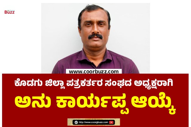 ಕೊಡಗು ಜಿಲ್ಲಾ ಕಾರ್ಯನಿರತ ಪತ್ರಕರ್ತರ ಸಂಘದ ಅಧ್ಯಕ್ಷರಾಗಿ ಅನು ಕಾರ್ಯಪ್ಪ ಅವಿರೋಧ ಆಯ್ಕೆ