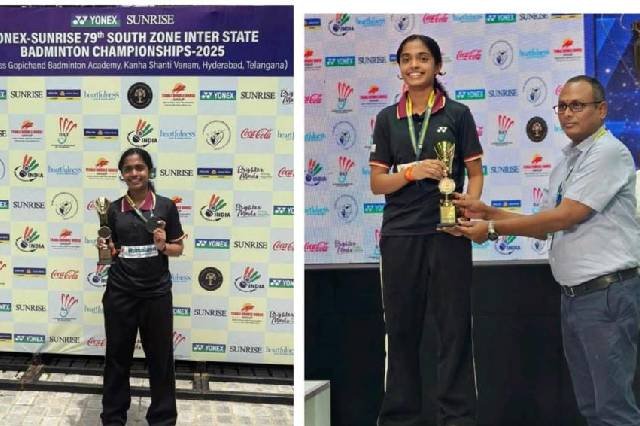ತೆಲಂಗಾಣ : ಹೈದರಾಬಾದ್ನ ಹಾರ್ಟ್ಫುಲ್ನೆಸ್ ಗೋಪಿಚಂದ್ ಬ್ಯಾಡ್ಮಿಂಟನ್ ಅಕಾಡೆಮಿಯಲ್ಲಿ ನಡೆದ ಯೋನೆಕ್ಸ್ ಸನ್ ರೈಸ್ 79ನೇ ದಕ್ಷಿಣ ವಲಯ ಅಂತಾರಾಜ್ಯ ಬ್ಯಾಡ್ಮಿಂಟನ್ 2025 ಸ್ಪರ್ಧೆಯಲ್ಲಿ ಕೊಡಗಿನ ದಿಯಾ ಭೀಮಯ್ಯ ಕರ್ನಾಟಕ ರಾಜ್ಯವನ್ನು ಪ್ರತಿನಿಧಿಸಿ 19 ವರ್ಷದ ಬಾಲಕಿಯರ ಸಿಂಗಲ್ಸ್ನಲ್ಲಿ ದ್ವಿತೀಯ ಹಾಗೂ ತಂಡ ವಿಭಾಗದಲ್ಲಿ ತೃತೀಯ ಸ್ಥಾನ ಗಳಿಸಿರುತ್ತಾರೆ. ಸೆಪ್ಟೆಂಬರ್ 2 ರಿಂದ 5ನೇ ತಾರೀಖಿನವರೆಗೆ ಸ್ಪರ್ಧೆ ನಡೆಯಿತು. ದೇಶದ ವಿವಿಧ ಕಡೆಗಳಿಂದ ಸ್ಪರ್ಧಿಗಳು ಹಾಗೂ ತಂಡಗಳು ಈ ಸ್ಪರ್ಧೆಯಲ್ಲಿ ಪಾಲ್ಗೊಂಡಿದ್ದವು.