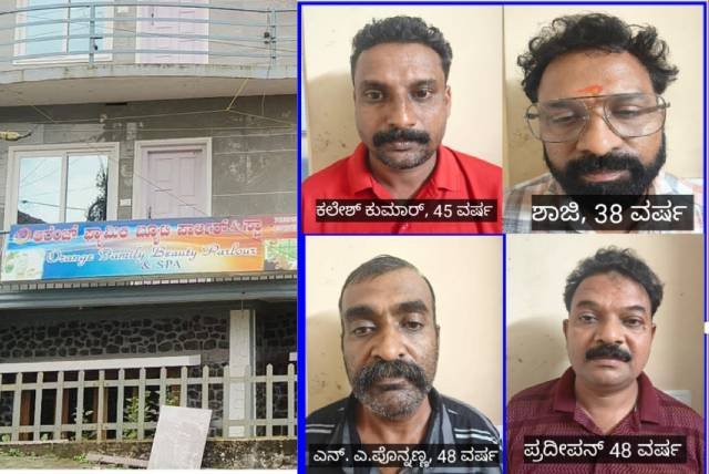 ವೀರಾಜಪೇಟೆ : ಗಾಂಧಿನಗರದಲ್ಲಿನ ಆರೆಂಜ್ ಫ್ಯಾಮಿಲಿ ಬ್ಯೂಟಿ ಪಾಲರ್ & ಸ್ಪಾ ಹೆಸರಿನಲ್ಲಿ ವೇಶ್ಯಾವಾಟಿಕೆ ನಡೆಸುತ್ತಿದ್ದ ನಾಲ್ವರು ಆರೋಪಿಗಳನ್ನು ಪೊಲೀಸರು ಬಂಧಿಸಿದ್ದಾರೆ.